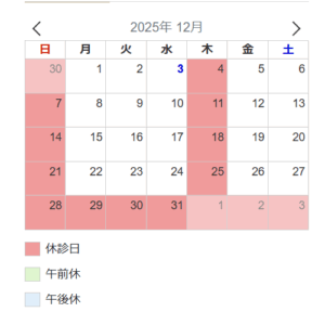 12月20日(土)の午後の診療は、都合により17時までとさせていただきます。